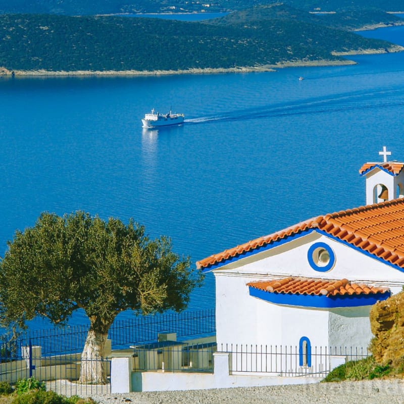 Potete raggiungerci anche attraverso il porto di Aghia Marina con il traghetto (45 minuti) che vi porterà Nea Styra.Da Nea Styra raggiungerete Marmari con la macchina percorendo una strada panoramica lungo la costa che dura circa 30 minuti.